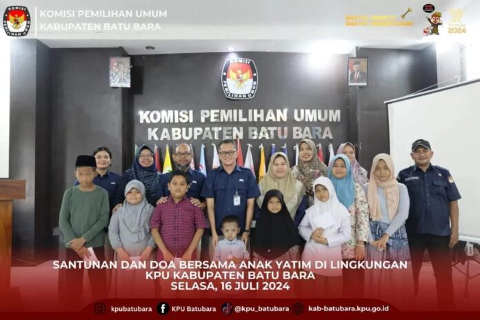 BATU BARA -Dalam rangka membentuk kepedulian terhadap generasi bangsa, mempererat tali silaturahmi, dan meningkatkan solidaritas antar sesama, KPU Kabupaten Batu Bara mengadakan kegiatan Santunan dan Doa Bersama Anak Yatim di lingkungan KPU Kabupaten Batu Bara pada Selasa, 16 Juli 2024. Acara ini dihadiri oleh berbagai lapisan masyarakat, tokoh agama, serta pejabat pemerintahan setempat, menunjukkan betapa pentingnya perhatian dan dukungan terhadap anak yatim di Kabupaten Batu Bara.