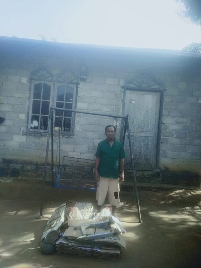 Setelah pintu dibuka , ternyata didepan pintu rumahnya ada banyak orang dan tumpukan besi bekas.