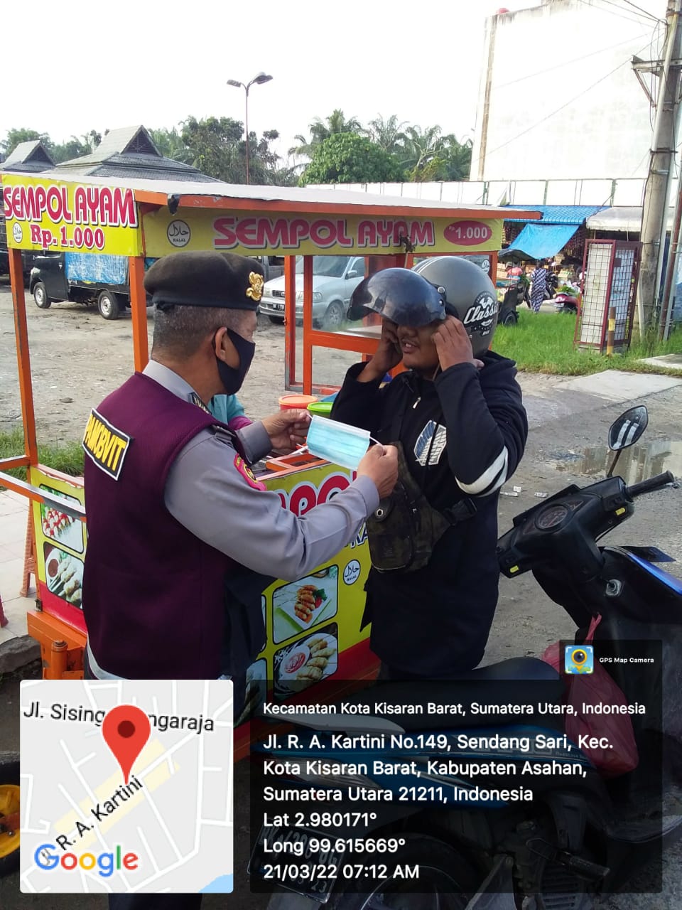 Selain melaksanakan pengaturan lalu lintas pagi hari, personel Sat Samapta Polres Asahan juga membagikan masker dan memberikan himbauan kepada pengguna jalan agar selalu mematuhi protokol kesehatan.