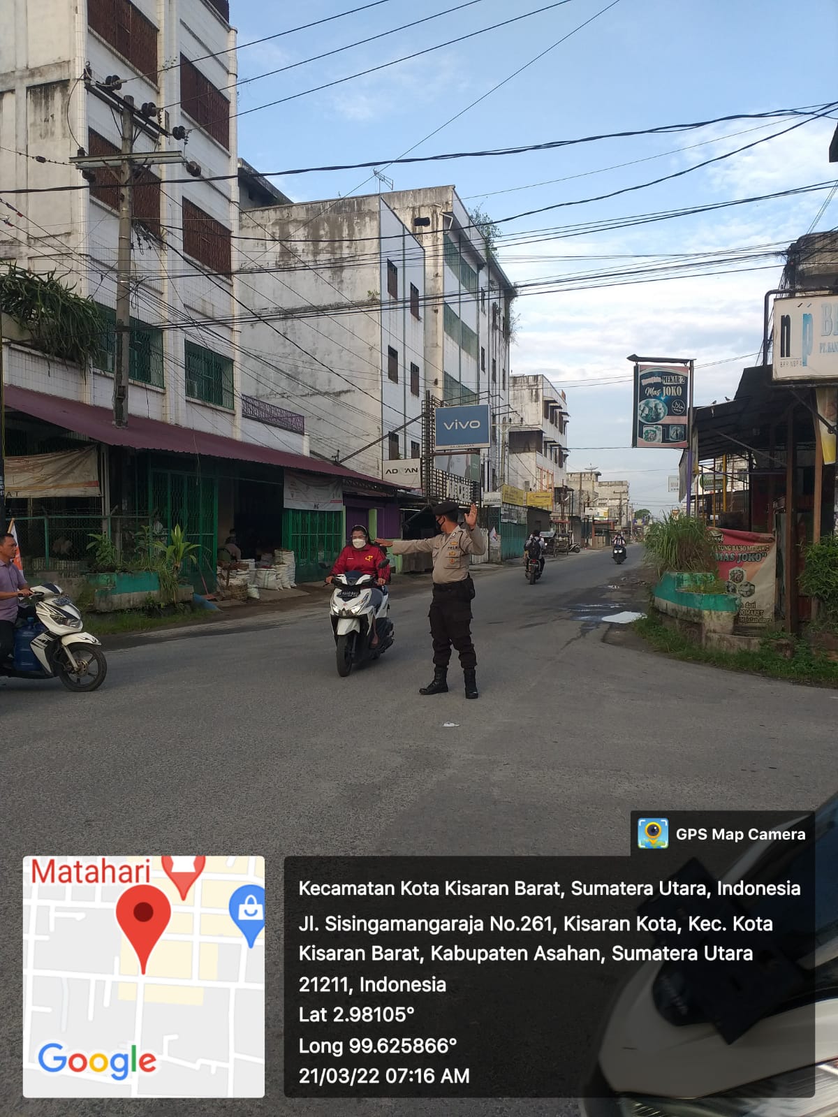 Adapun lokasi pengaturan lalu lintas di pagi hari yang dilakukan tersebut yakni Jln.SM Raja simp Jln.Panglima Polem Kisaran (Aipda Andre dan Bripka Riyadi), Jln Diponegoro Simp Jln.Mas Mansyur Kisaran (Aiptu P.Butar- butar), Jln.Kartini simp jln.Malik Ibrahim Kisaran (Aiptu Azhari dan Aptu J.Saragih).Red