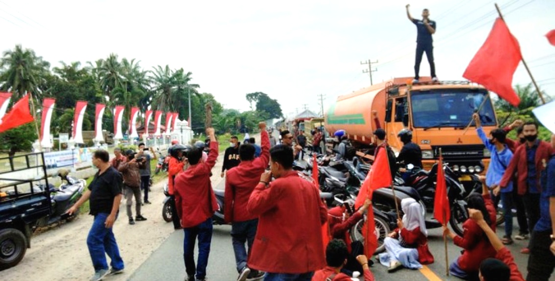 ASAHAN II NEWSPOLDASU.COM – Mahasiswa di Asahan, Sumatera Utara (Sumut), melakukan unjuk rasa dengan memblokir Jalan Lintas Sumatera (Jalinsum) di depan kantor DPRD Asahan. Mereka menolak renovasi rumah dinas Bupati Asahan.