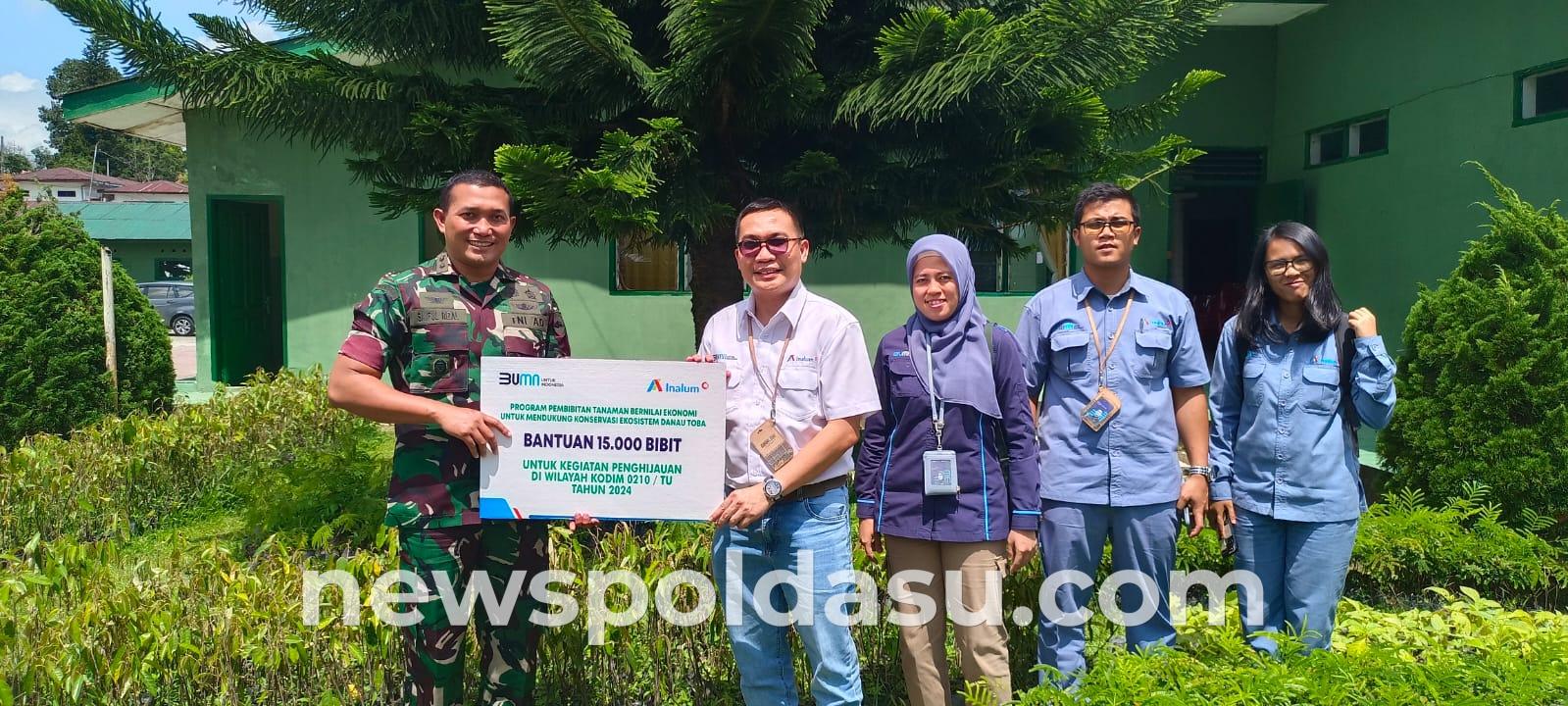 *Tapanuli Utara, 01 Februari 2024* – PT Indonesia Asahan Aluminium atau INALUM mendukung program reboisasi di sekitar Danau Toba dengan menyerahkan bantuan 15,000 bibit pohon ke Kodim Tapanuli Utara. Dukungan tersebut dilakukan agar penghijauan di sekitar Danau Toba terus berlanjut dan dikembangkan.