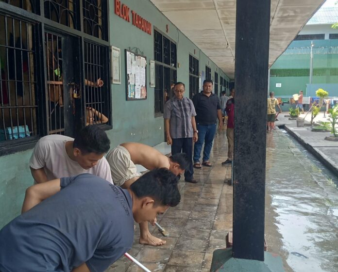 Batu Bara – Dalam rangka menjaga kebersihan dan kenyamanan lingkungan di dalam Lembaga Pemasyarakatan, Kalapas Labuhan Ruku Soetopo Berutu melaksanakan kegiatan kebersihan di blok hunian warga binaan, Minggu (9/11).