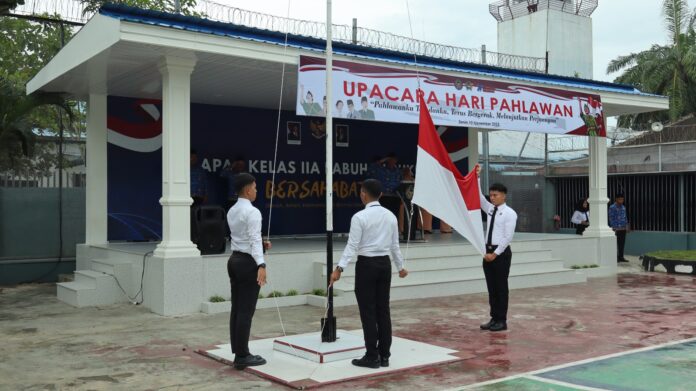 Batu Bara – Lembaga Pemasyarakatan Kelas IIA Labuhan Ruku melaksanakan upacara peringatan Hari Pahlawan di lapangan dalam Lapas (10/11). Kegiatan berlangsung khidmat dengan Kepala Lapas Labuhan Ruku, Soetopo Berutu, bertindak sebagai Inspektur Upacara.